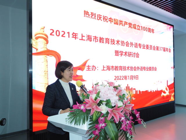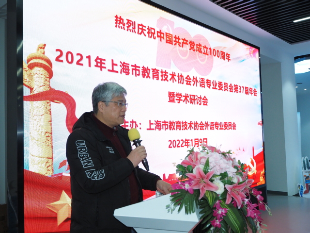 随后,上海市教育技术协会外语专业委员会会长陈坚林教授作《2021年上海市教育技术协会外语专业委员会工作报告》。报告回顾了2021年协会的主要工作,指出协会在党的教育方针指引下,宣传和推广外语教育与教学经验,加强校际协作,开展多项学术研究工作,举办了优秀论文、优秀课件征集活动。陈会长指出,今年时值建党100周年,协会坚持以习近平新时代中国特色社会主义思想为指导,结合党史教育,不忘初心、牢记使命,持续推进外语信息化现代教育的工作,不断开创“产学研”互利共赢的新局面。