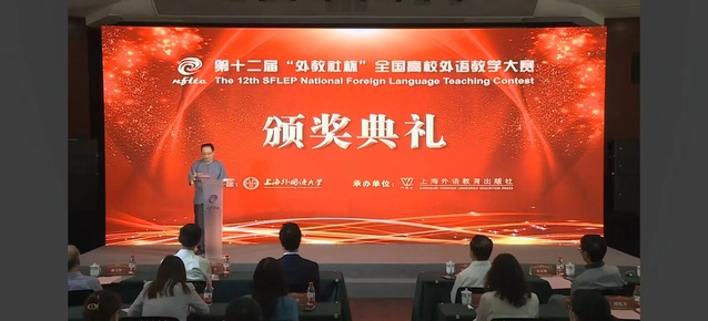 “外教社杯”全国高校外语教学大赛全面落实全国教育大学精神,积极践行《加快推进教育现代化实施方案(2018-2022)》,深入贯彻党的十九届五中全会精神,通过搭建全国性的竞赛平台,持续推动高校外语师资队伍建设,大力促进教师发展,不断深化教学改革,积极探索建设具有中国特色的外语教育体系。第十二届“外教社杯”全国高校外语教学大赛于2021年4月启动,受疫情影响,历时一年半。在全国决赛中,选手制作微课视频,根据对微课视频展现出的教学理念和教学效果的评估,评选出入围全国总决赛的10名选手。在全国总决赛中,参赛选手需要在比赛现场接收授课材料,并在半小时内完成备课,在7-10分钟内完成说课。毛伟老师在比赛中以清晰的思路、流利的表达、专业的展示,展现了我校青年教师的风采。