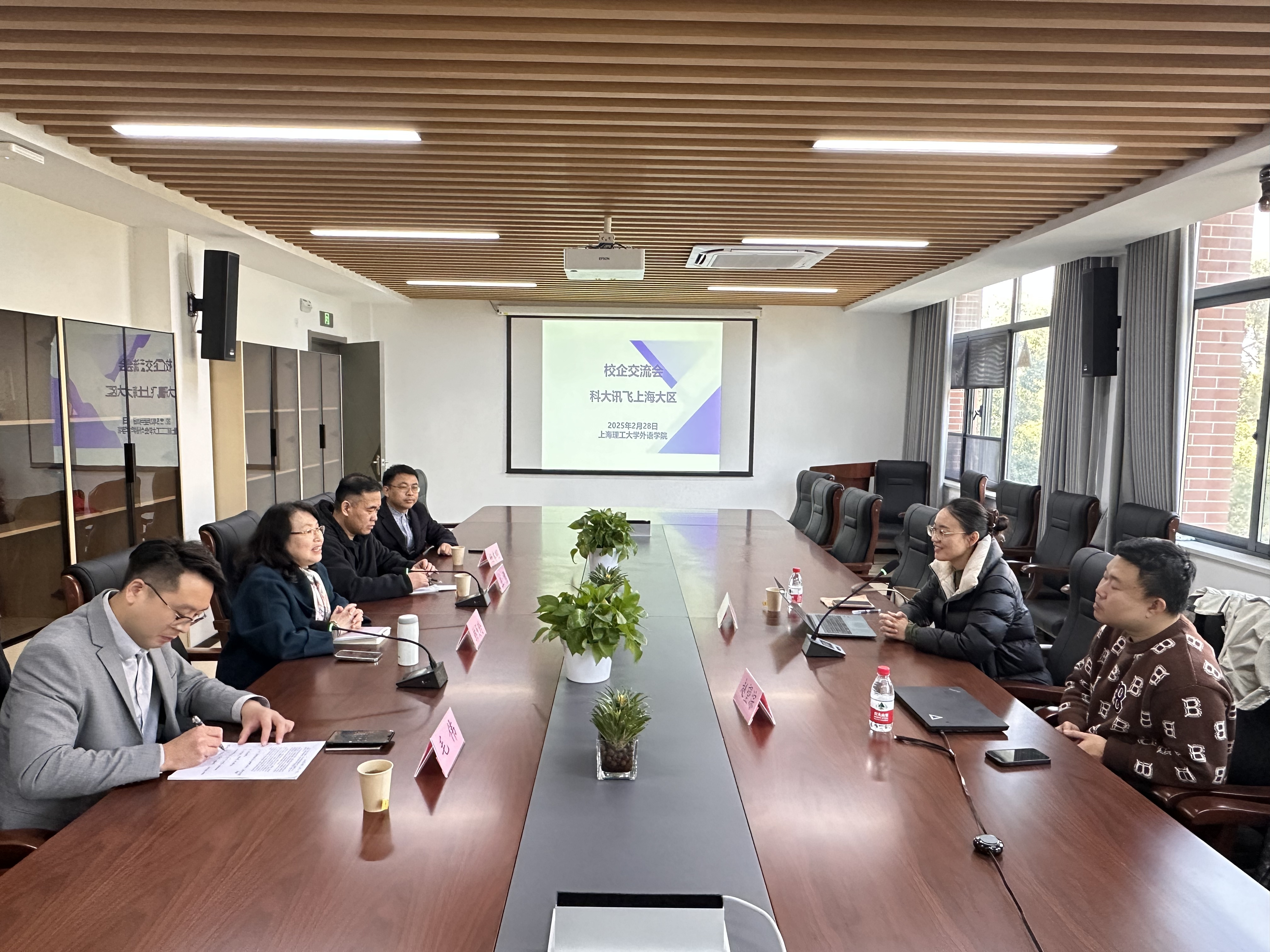 2月28日,我院与科大讯飞上海区代表在306会议室举行校企合作交流会。外语学院副院长韩戈玲教授主持会议,MTI教育中心主任王勇教授、副主任毛伟副教授、日语系主任杨本明教授与科大讯飞上海区行业总监林佳佳、客户经理赵望淙进行座谈交流。