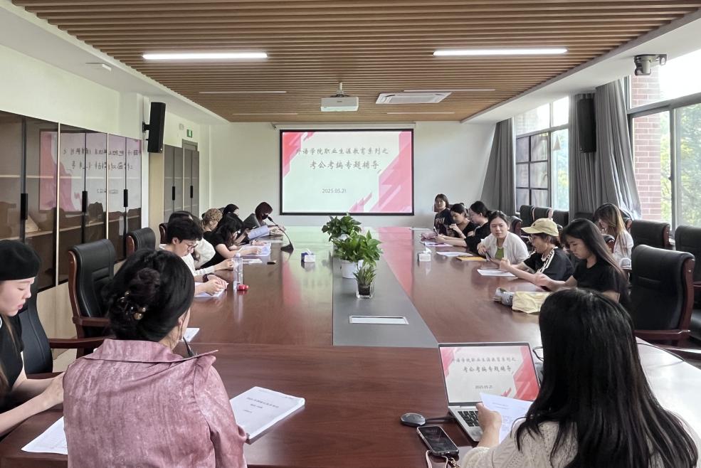 为帮助外语专业学子把握公职类考试机遇,了解当前考公考编形势,正确对待和审慎考虑考公考编的职业选择。5月21日,外语学院于306会议室举办“考公考编”专题辅导讲座。2022级、2023级二十余名同学参加了讲座。讲座由外语学院学业发展中心负责老师苏予燕主持。