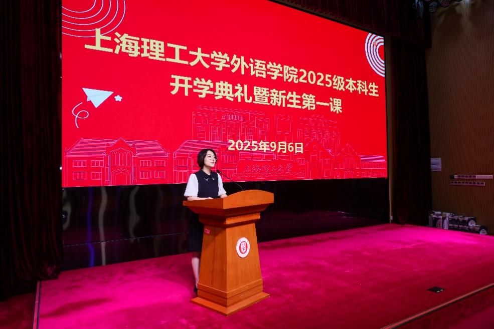 下午3时,开学典礼在庄严的国歌声中拉开帷幕。外语学院党委副书记沈莲莲主持典礼,院长刘芹教授首先致辞。她回顾学院四十余年发展历程,强调外语与科技融合的培养特色,勉励新生成为“AI时代有思想的外语人”,胸怀家国、放眼世界。教师代表、英语系副主任韩洋博士以“语言的人文温度与科技融合”为主题,鼓励同学们主动探索跨学科学习,成长为兼具文化洞察与技术创新的复合型人才。