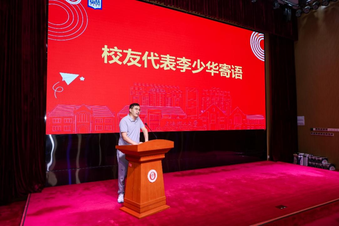 上海理工大学杰出校友、外语学院2000届语言专业毕业生、上海水成环保科技股份有限公司董事长李少华先生重返母校,分享其从“行业小白”到“行业标准制定者”的创业历程。他寄语学弟学妹:“你能挑起多大的责任,就有多少人会托起你的梦想”,鼓励大家珍惜大学时光,用心经营诚信与专业。同时,现场还播放了来自全国多地校友的寄语视频,温暖的话语、真挚的祝福,跨越山海,汇聚成一股激励新生的力量。