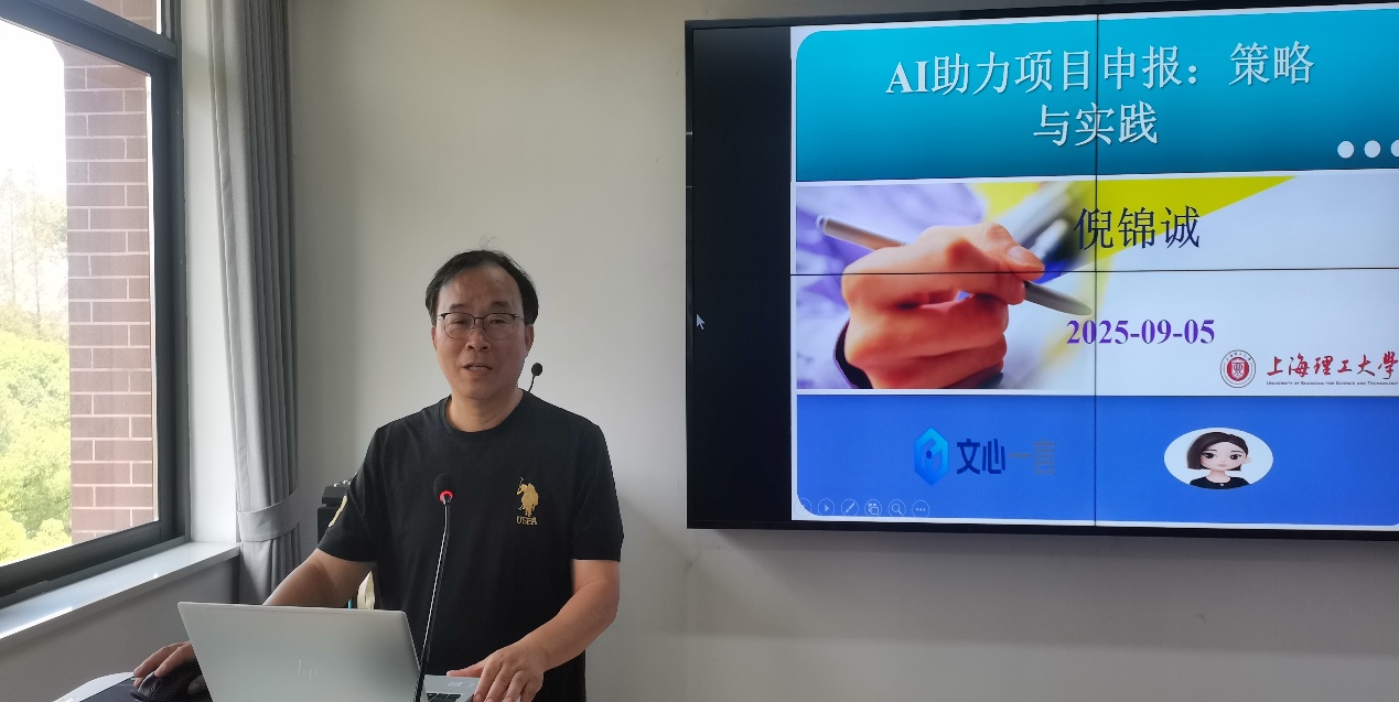 2025年9月5日,语言学研究所在外语学院502会议室举办AI助力课题申报和论文撰写研讨会,旨在提升教师运用AI技术增强科研能力。倪锦诚教授做了题为"AI赋能项目申报:策略和实践"的专题讲座,重点介绍了多种AI工具在生成选题、文献综述和内容优化等方面的具体应用案例。倪教授强调,在使用AI辅助申报过程中必须坚持学术诚信,确保研究成果的原创性和合规性。
