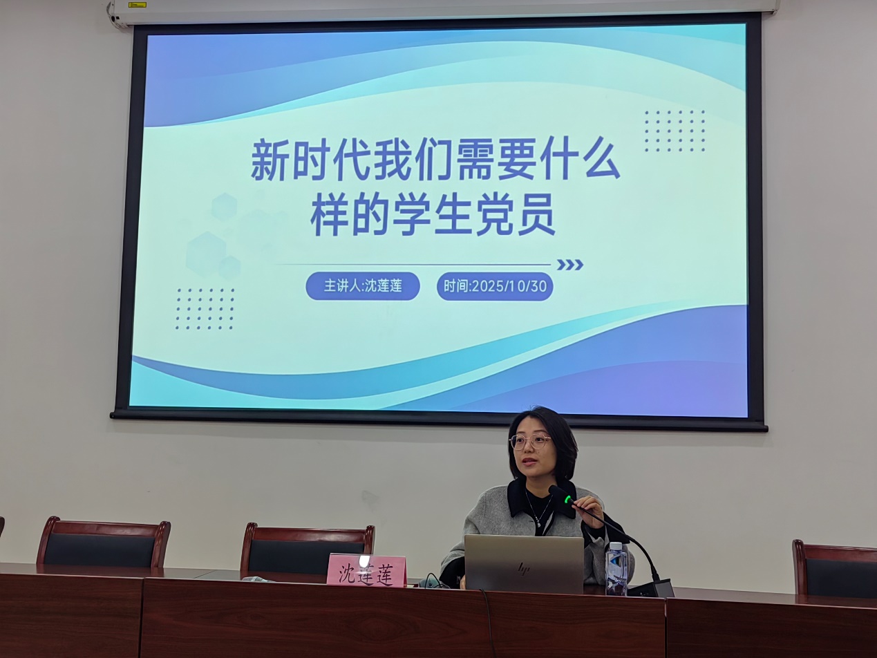 10月30日,外语学院第56期入党积极分子培训班理论教学第二讲在学院报告厅举行。此次党课由学院党委副书记沈莲莲老师主讲,主题是“新时代我们需要什么样的学生党员”。